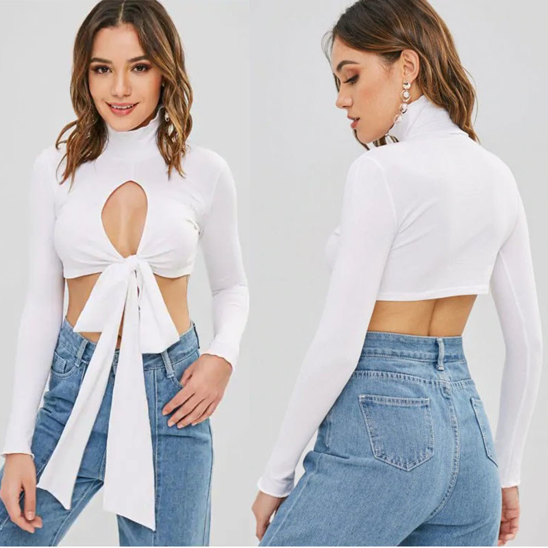 Abbigliamento da ginnastica donna taglio colletto di tartaruga cravatta top di raccolta |